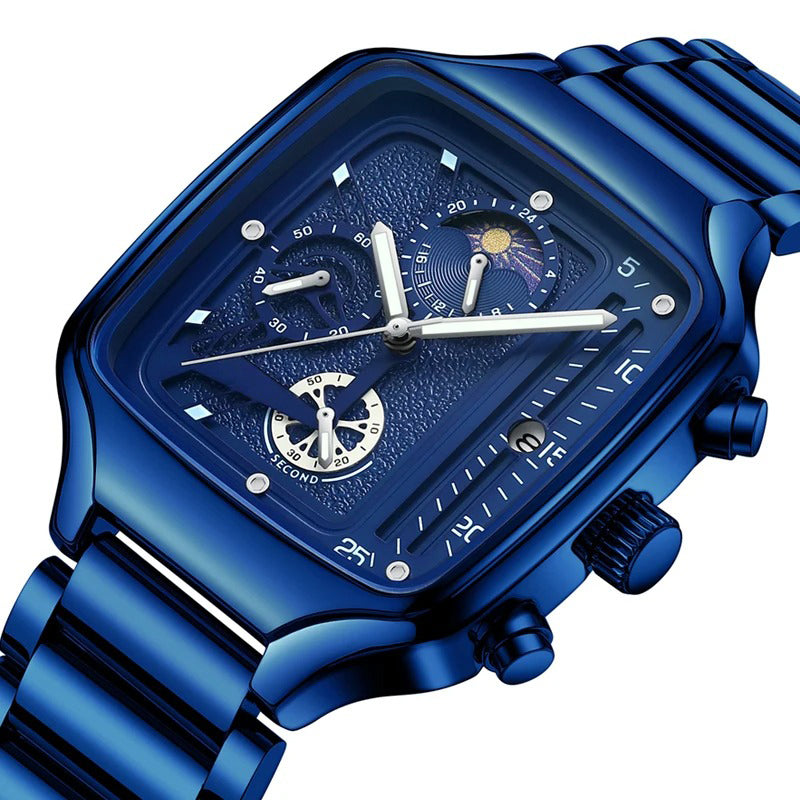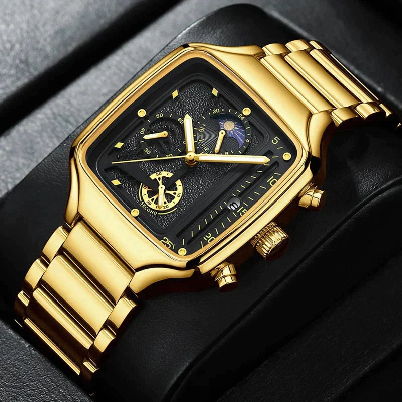 • Zusatzfunktionen: Chronograph, Komplettkalender, Mondphase, Wasserdicht, Leuchtende Zeiger